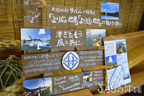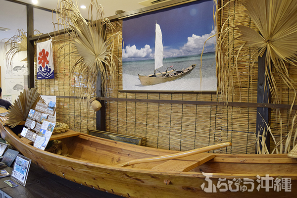 同じく帆掛け繋がりで、店内には本物のサバニが展示されている。現代は職人が減っているサバニの世界を、新しい力で支えようと頑張る若い風が紹介されている。