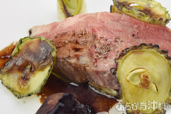 牛ミスジのローストビーフ・ハイビスカスのフリットとトリュフも香り