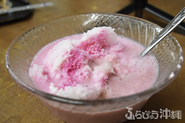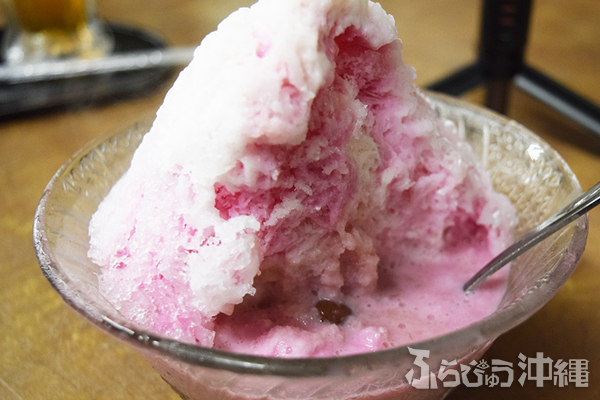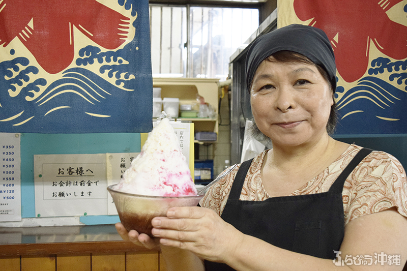 ルーツは1952年頃、ひめゆり通り近くに開店した食堂。そして1960年に与儀に「千日アイスケーキ」を開いた。そんな長い歴史の中で愛されてきた千日ブランド、今でも親子4世代で通う常連さんもいるそう。これでも値上げしたと、創業者の三女で味を引き継いでいるれい子さんが話してくれたが、その値段は驚きのワンコイン以下。観光向けに氷菓子店が増える現代では、なかなか貴重な価格設定、ありがたい。