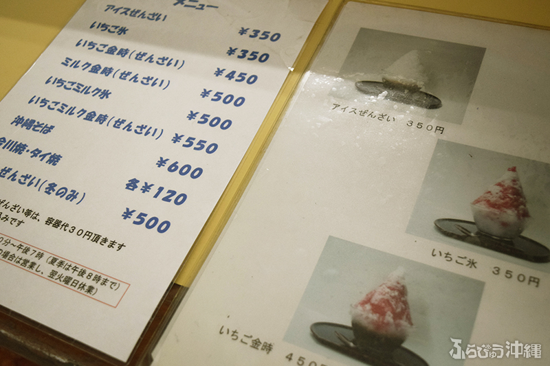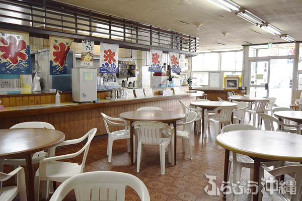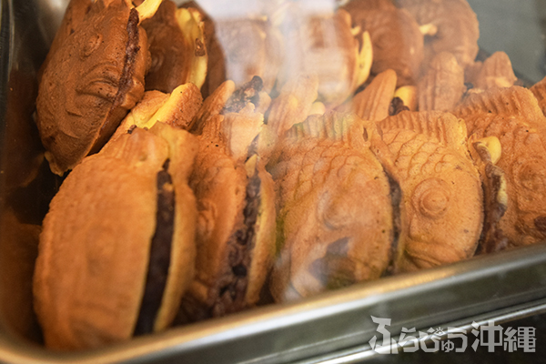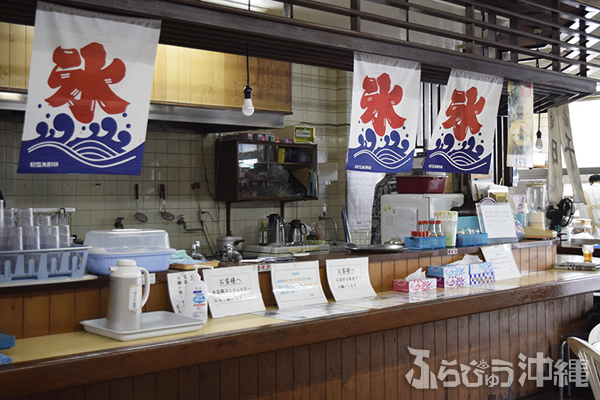 奥の丸テーブルを陣取り早速注文に向かう。ココでの定番な過ごし方は「沖縄そば」を食べた後の「ぜんざい」に持ち帰りで「たい焼き・今川焼き」のようだ。取材中、この流れで注文していくお客様が本当に多かった。