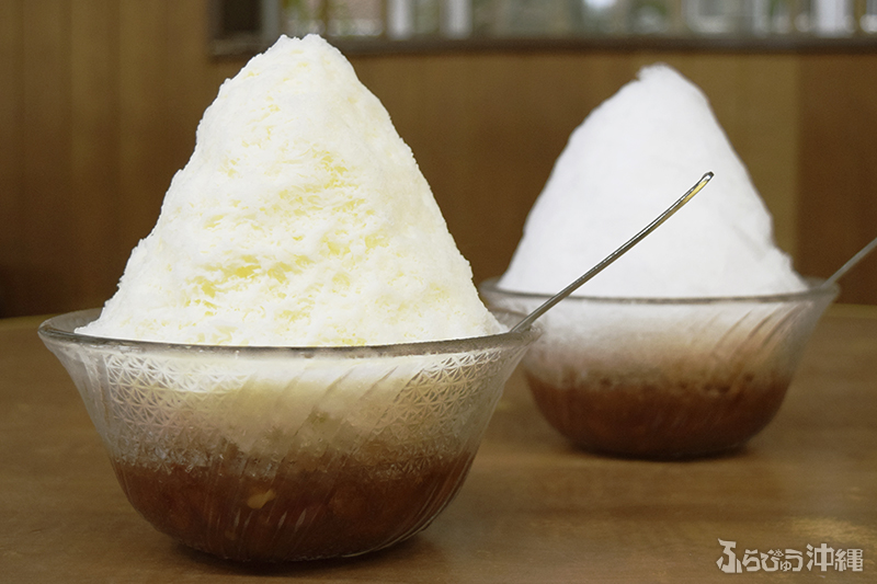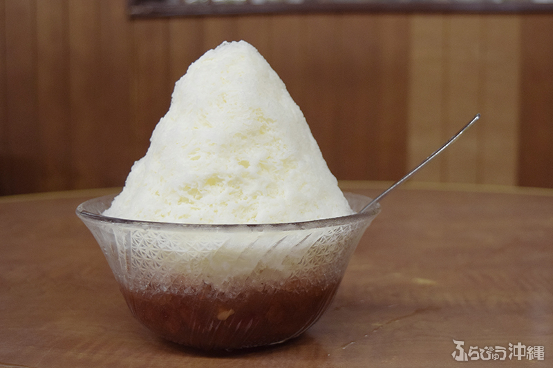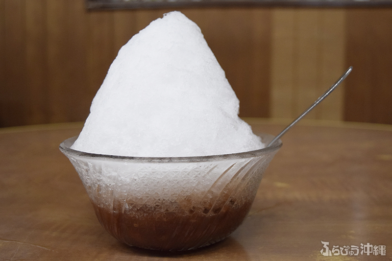 絵に描いたような「沖縄ぜんざいとは」を体現している器に、シンプルな氷山。とにかく程よい甘さのぜんざいに、取材中もひっきりなしに様々な人が来店。近年はテイクアウトも増え、駆け足で入ってくるサラリーマンも多い。男性1人で来店する姿が多いのも、那覇の中心地にあるからこその光景。
