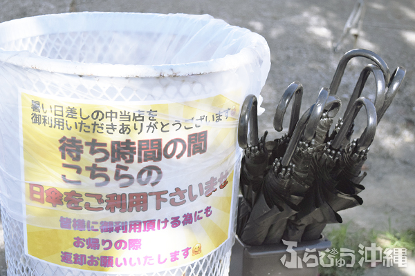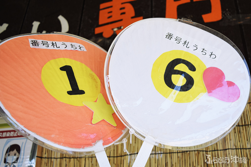 店前は混み合い日陰はすぐにいっぱいになってしまう。そんな環境も楽しめるアイテムとして、日傘の貸し出しサービスや、待ち時間に渡される番号札には大きなうちわが使われていたりする。そんな遊び心も感じるぜんざい専門家〜、夏場のみの営業で毎年4月か5月〜10月頃までだそう。ぜひ暑い日のドライブ途中、立ち寄ってみてはいかがだろうか。