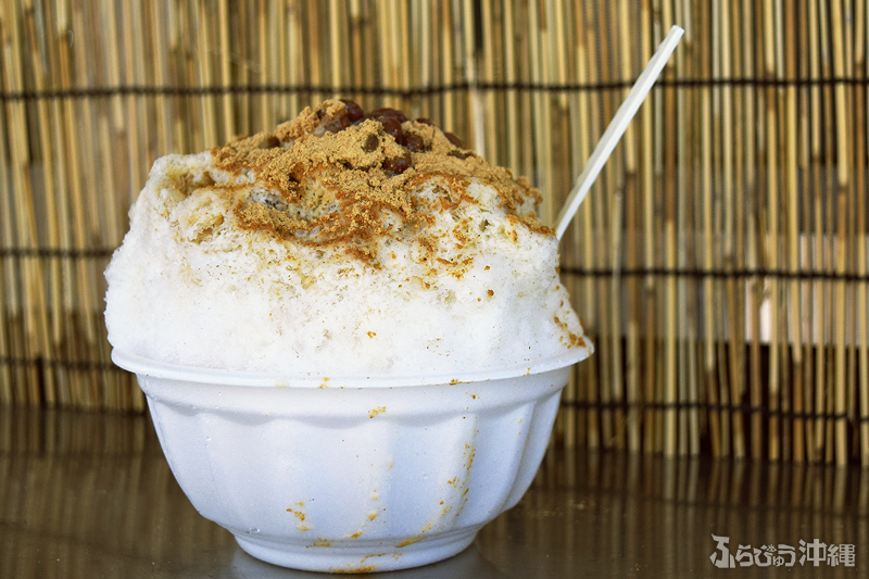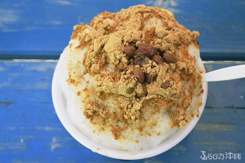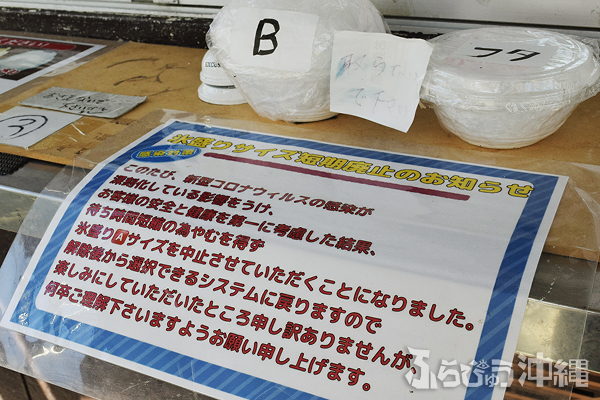 おそらく沖縄そば用と思われる大きな丼にドッサリ入った氷は、パッと見で2人分。特徴的なのは見た目の大きさもだが、その注文方法にもあった。筆者も迷わないように、しっかり前の人の注文を見て望む。