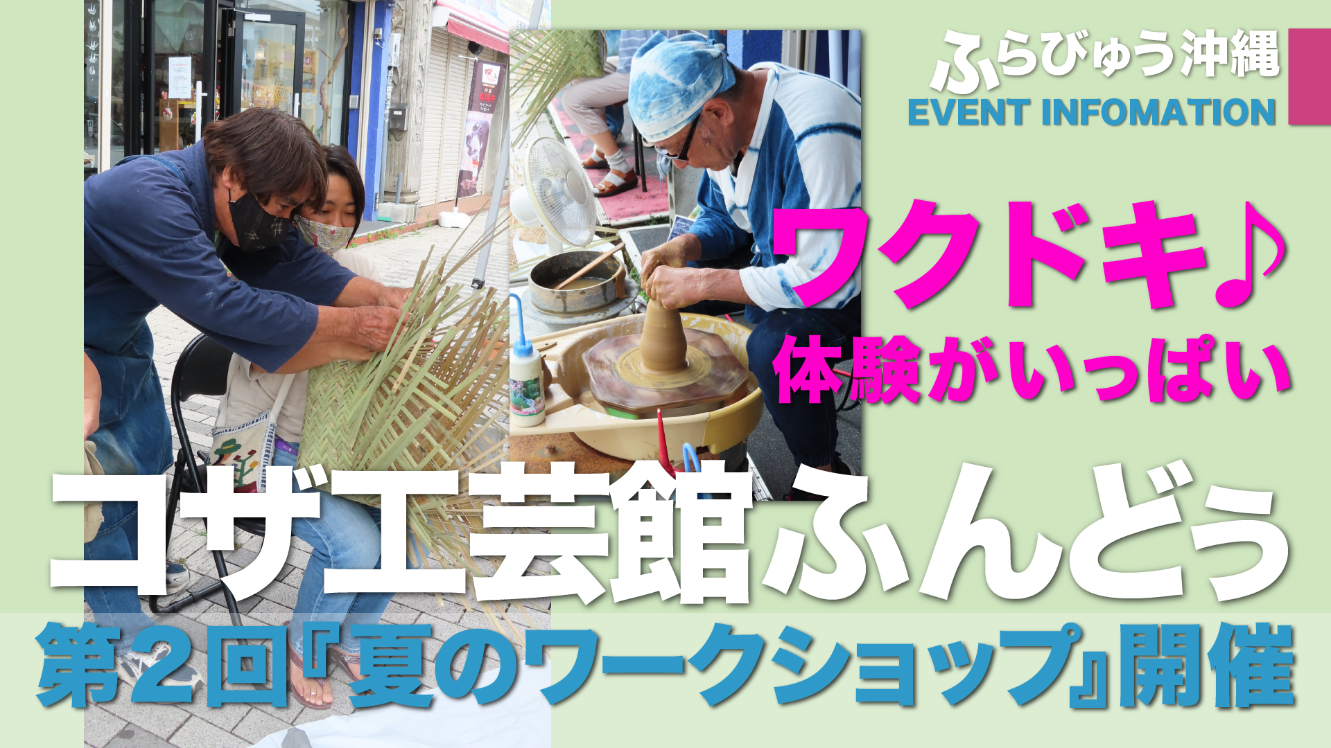 コザ工芸館ふんどぅは沖縄市の工芸が揃ったアンテナショップなので、全てオリジナル・ココだけのアイテムが並んでいる。そんな工芸技から、1人でも親子でも簡単に挑戦ができる体験が勢揃い!