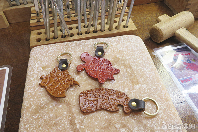 皆で作った思い出をいつも持ち歩ける、革キーホルダー体験では、自分の好きな模様や名前を入れることが可能なので、プレゼントにもピッタリ!