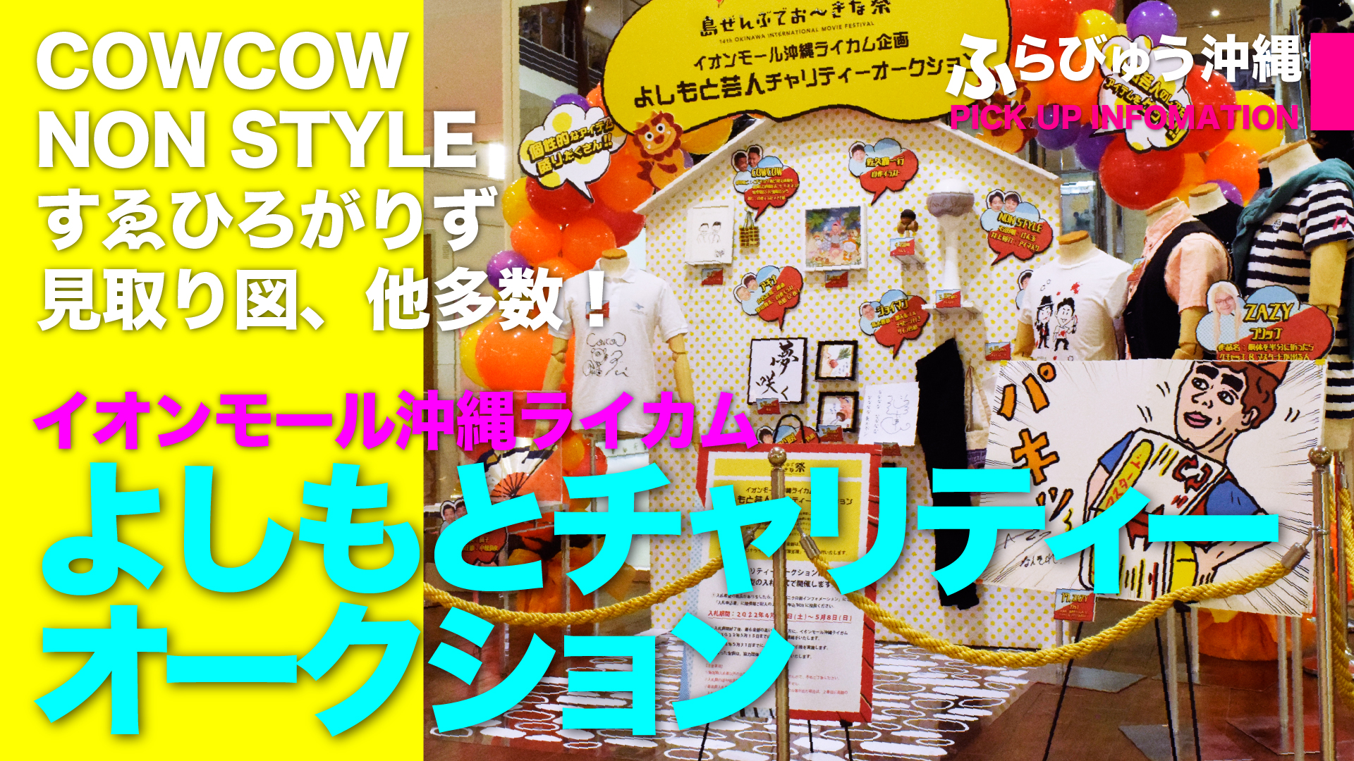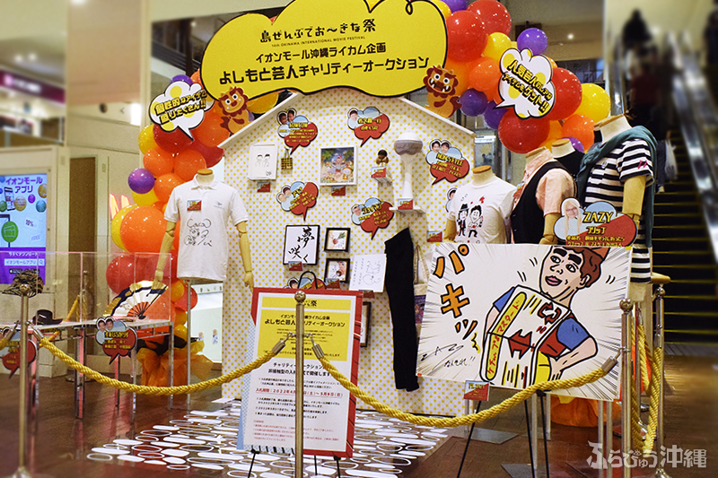 『島ぜんぶでおーきな祭 〜第14回沖縄国際映画祭〜 イオンモール沖縄ライカム企画 よしもとチャリティーオークション』と題して、吉本興業に所属する人気芸人たちが提供した、愛用品が展示・出品されている。