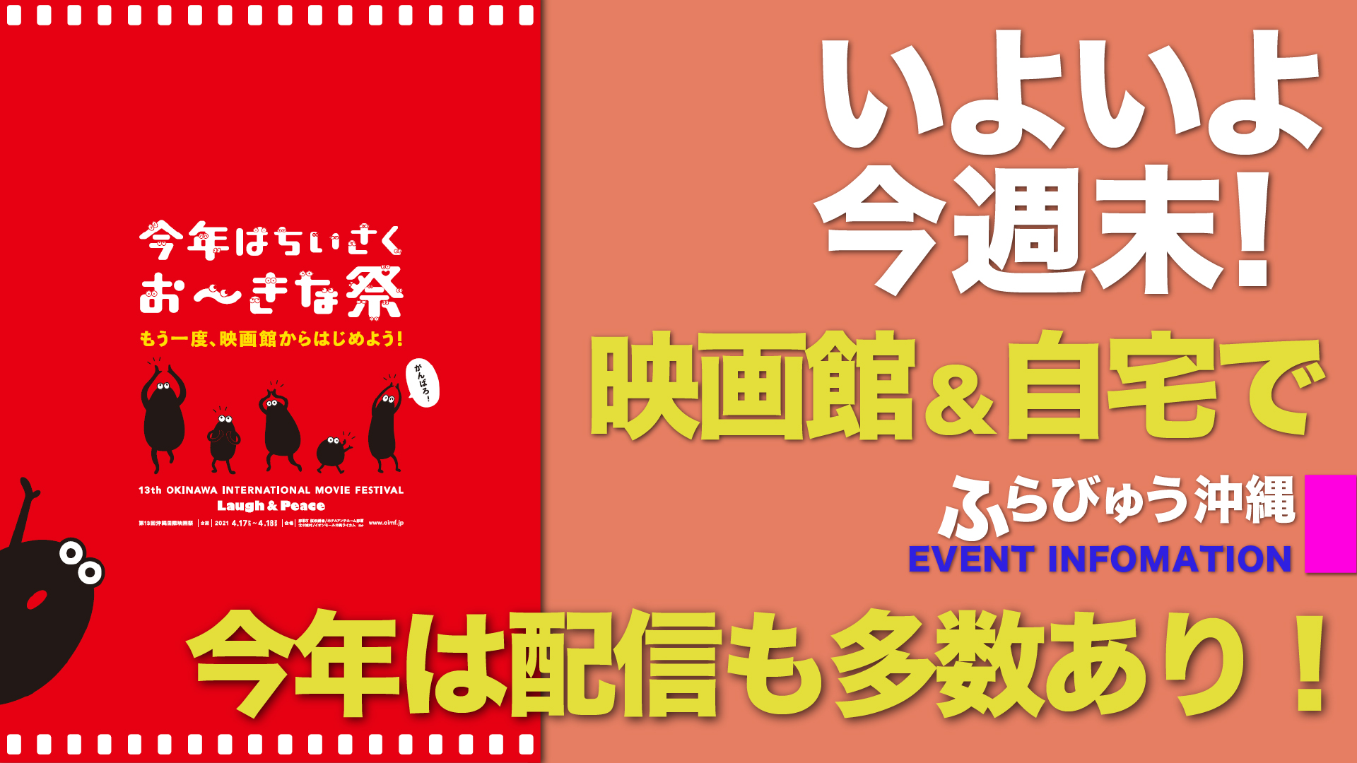 県内に「まん延防止等重点措置」が適用されたことを受け、直前に映画舞台挨拶登壇者の変更や、アートイベント中止が発表された。2009年に始まった「沖縄国際映画祭」は、2015年に「島ぜんぶでおーきな祭」と名称を変えて、今年で13回目の開催である。